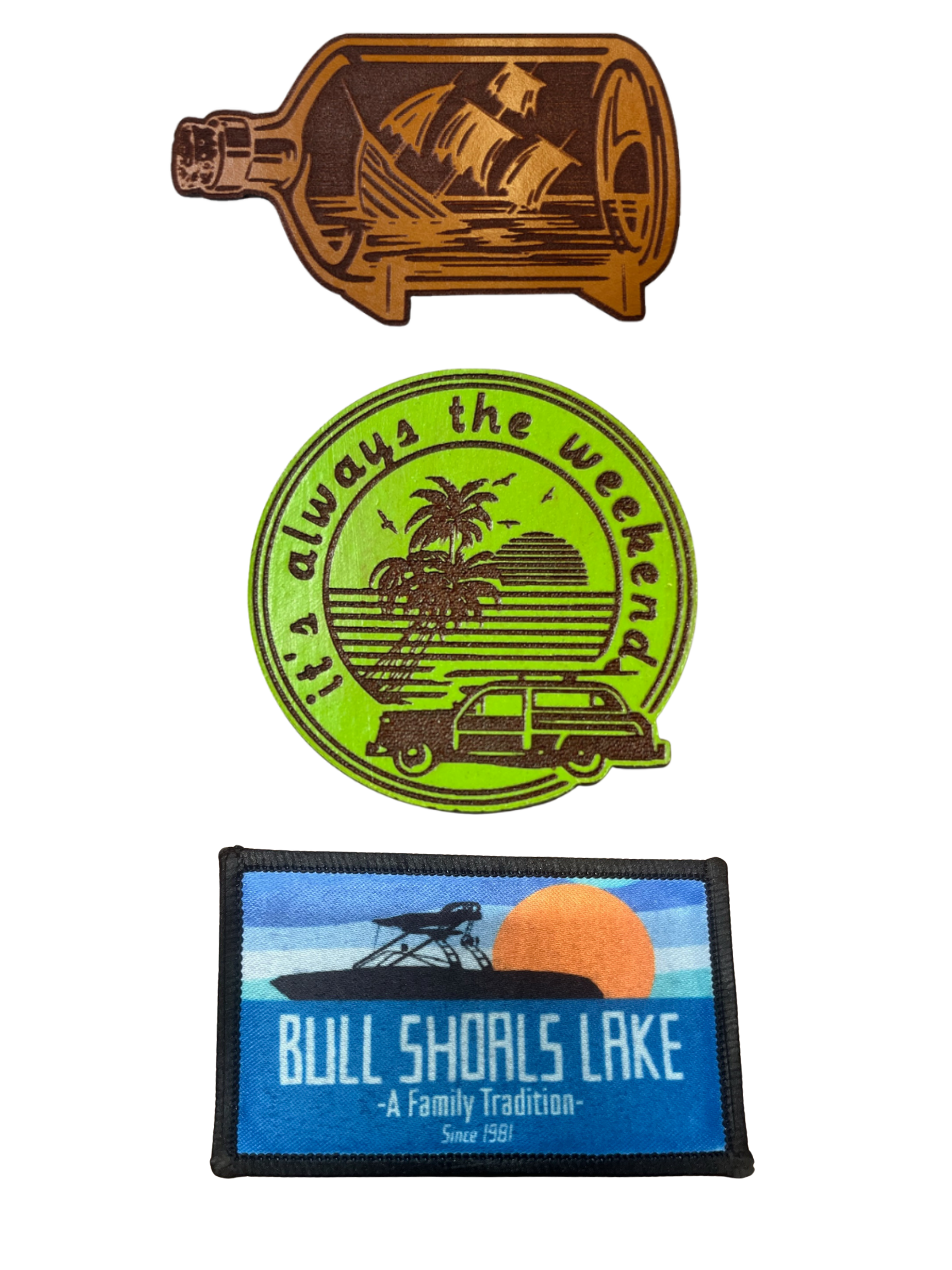 Patches that are made for a logo, initials, phrase, whatever you need. A small but perfectly lasered design that can accommodate a lot of detail. With three different options, there's something for everybody.